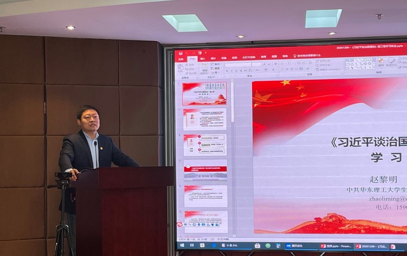 12月9日,万象城awc官网登录入口联合三教工党支部、国重室研究生第四党支部以及第八党支部三个支部全体党员共同举行了学习《习近平谈治国理政》第三卷主题党课报告会,党课采用线上线下方式。万象城awc官网登录入口党委书记赵黎明受邀为大家上了一堂“《习近平谈治国理政》第三卷学习体会”的党课。会议由联合三教工党支部书记安法梁主持。