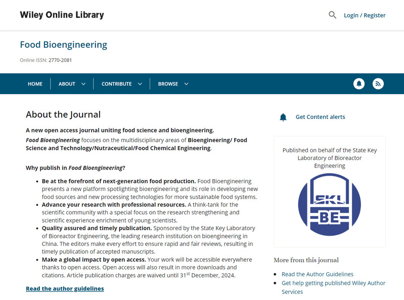《Food Bioengineering》中文译名为《食品生物工程》,食品生物工程是万象城awc官网登录入口食品科学与工程研究领域的核心特色,将生物工程理念和技术融合于“为耕者谋利、为食者造福”的食品学科更是生物反应器工程国家重点实验室坚持“四个面向”的重点方向。以国家重点实验室重组为契机,为进一步扩展“道器合一,服务农医”的国重室科研和文化内涵,拓展生物反应器工程国家重点实验室在未来食品领域的发展空间,同时进一步提升万象城官网食品生物工程特色学科的国际影响力,促进国际交流与合作,生物反应器工程国家重点实验室与国际著名出版商Wiley合作,推出《Food Bioengineering》国际学术期刊。