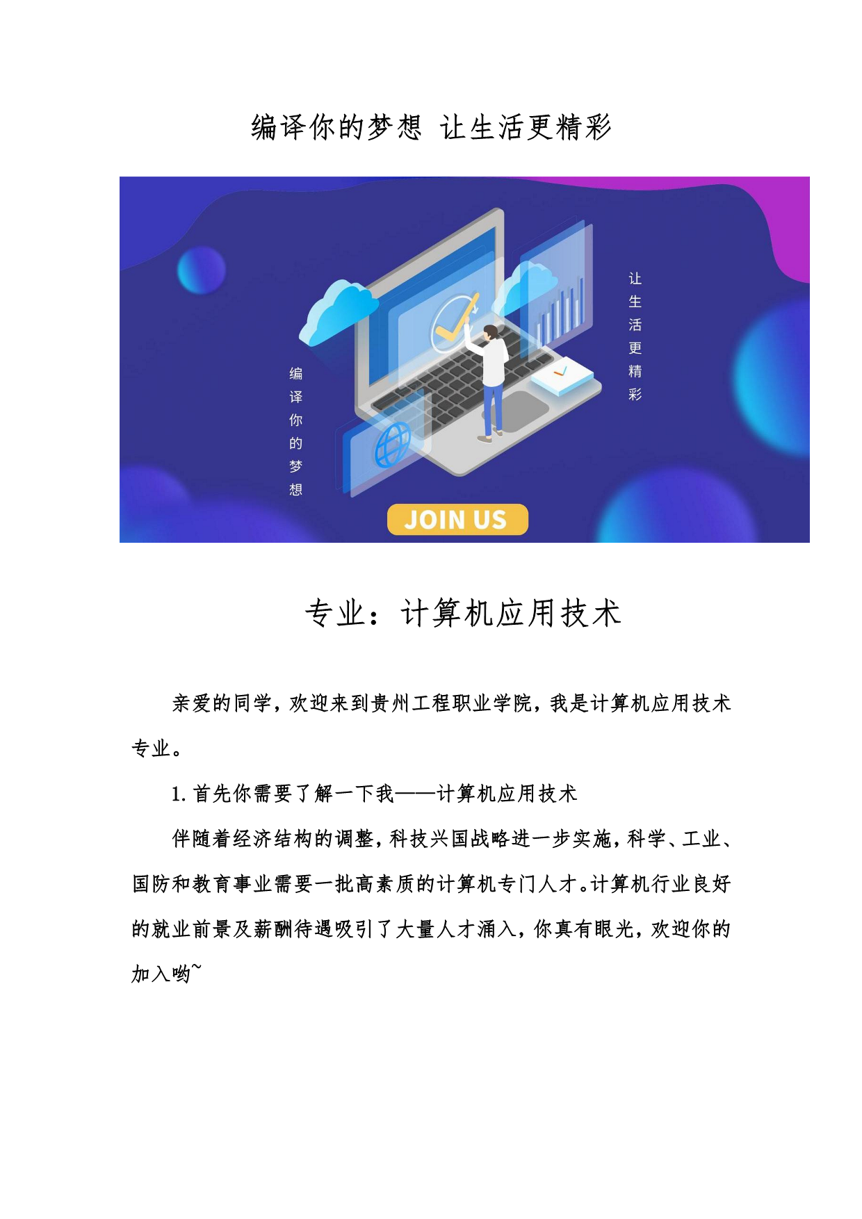 编译你的梦想 让生活更精彩—计算机应用技术专业