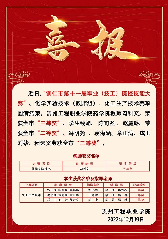 药学院开设有药学、药品经营与管理2个专业,先后隶属生命科学系、康养工程学院、健康学院,2020年学校设立药学院,设有办公室、学生科、教务科、实训科共4个科室,现有在校生1600余人。 学院践行理实一体化的培养。建有基础化学实验实训室、有机化学实验实训室、中药标本室、药物化学实验实训室、药品生产仿真实训车间、模拟药房、制水室、医药公司沙盘、化学实验准备室,满足实验实训的需求。 学院十分注重学生实践技能和综合素质的培养。近年来,学生在技能大赛方面,获贵州省职业院校技能大赛一等奖1项,二等奖4项,三等奖4项;在创新创业方面,获贵州省创新创业大赛、中国国际大学生创新大赛贵州省赛铜奖2项。 学院秉承“厚德重能、知行合一”的校训,以培养具...